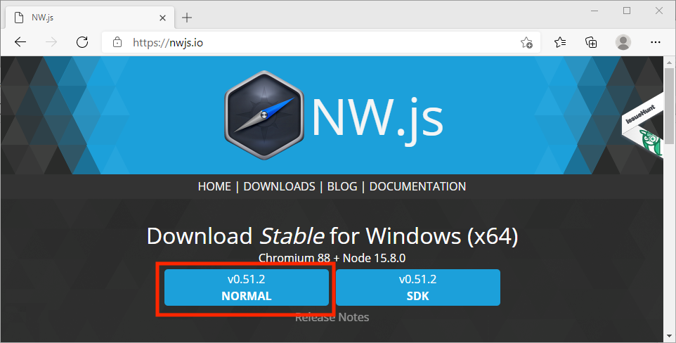 3. Navigate to the NW.js website at https://nwjs.io and download the v0.51.2 Normal version for Windows(figure #2)