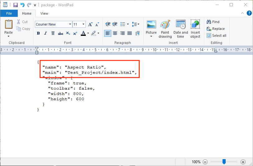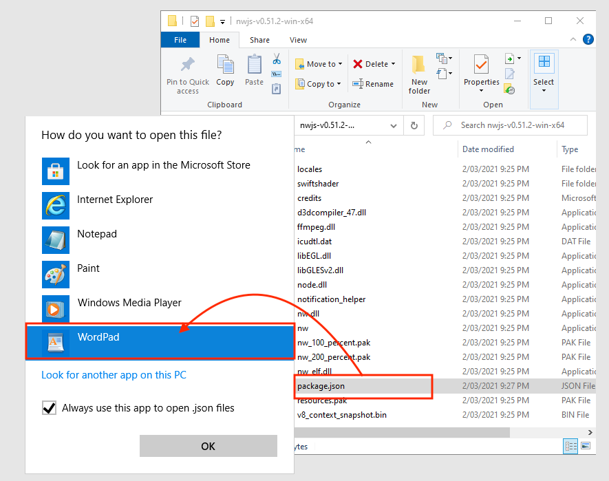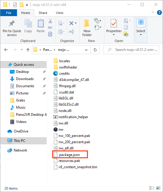 Figure #4: package.json file in the nwjs-v0.51.2-win-x64 folder