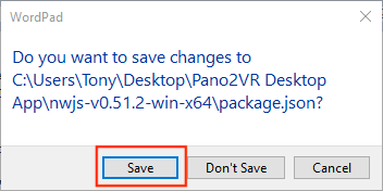 Figure #7: Save the .json file back into the nwjs-v0.51.2-win-x64 folder