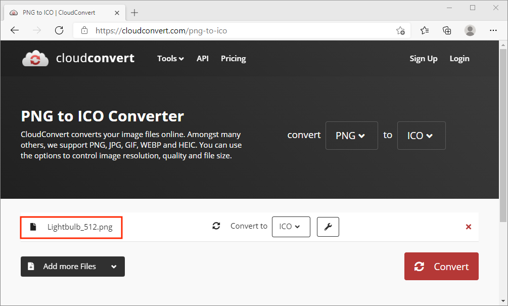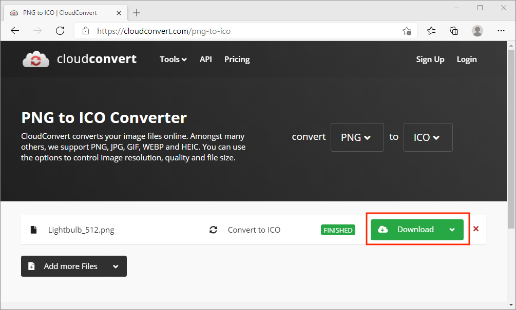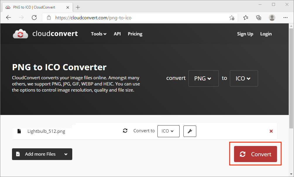 Figure #13: CloudConvert - PNG to ICO